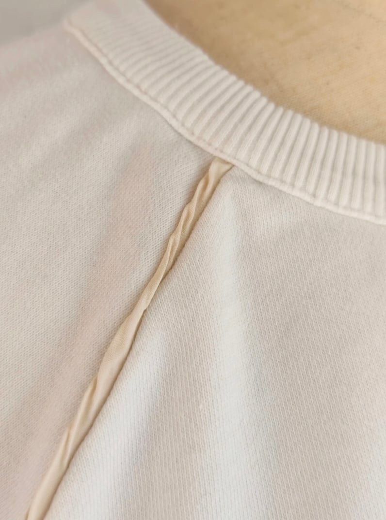 ラグランラインの、さりげないパイピングもアクセントとして楽しんでください。