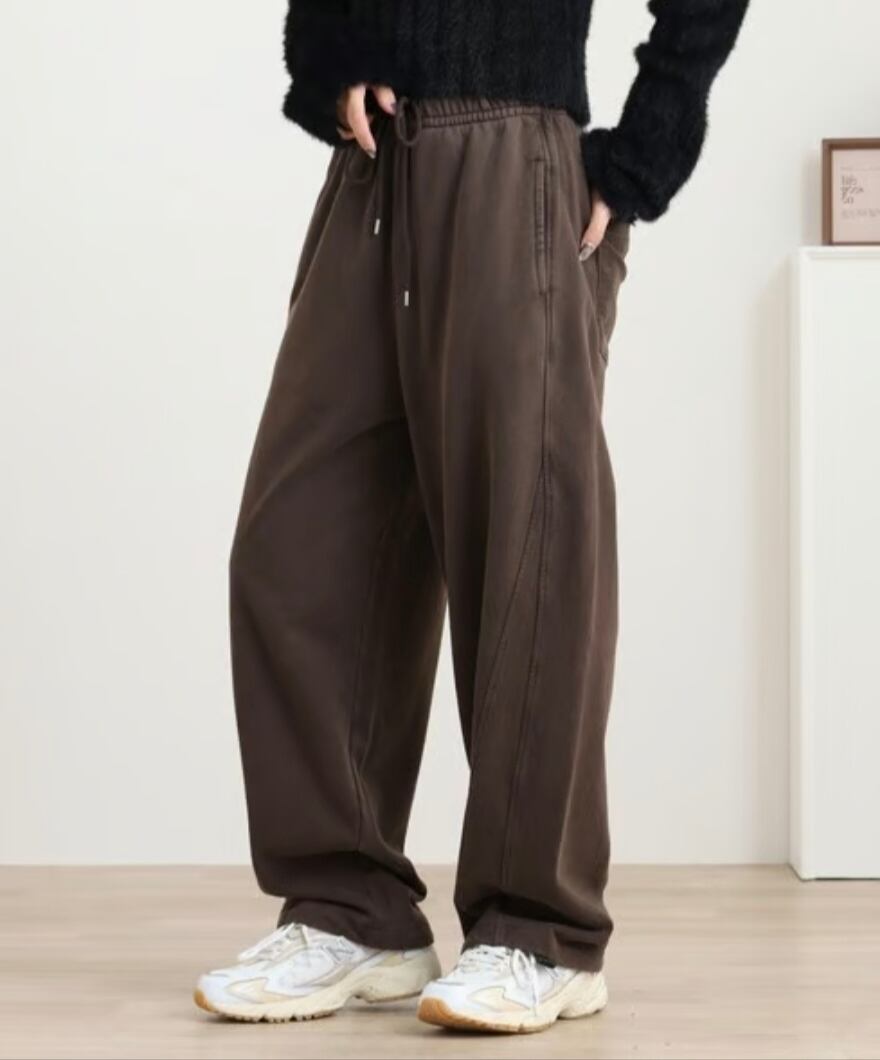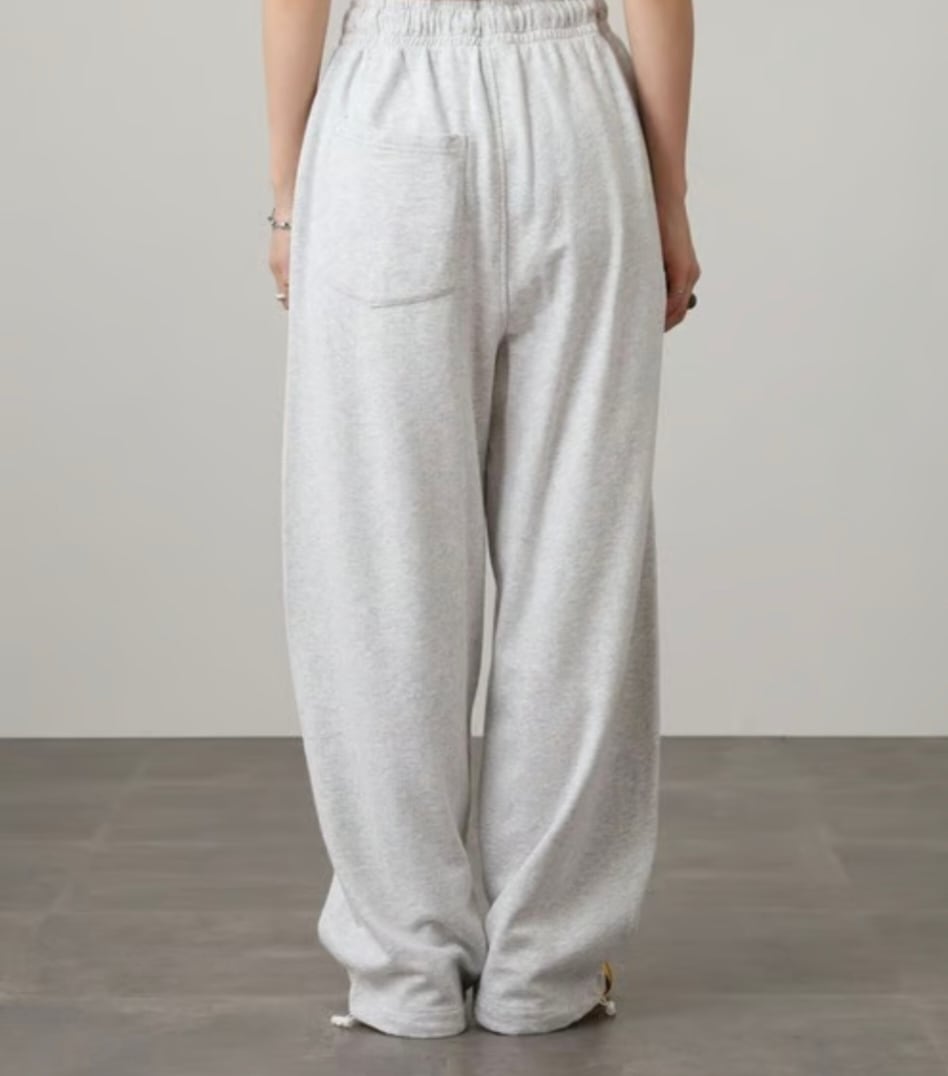 形は膝下からボリュームをもたせたバレルレッグタイプのスウェットパンツ。