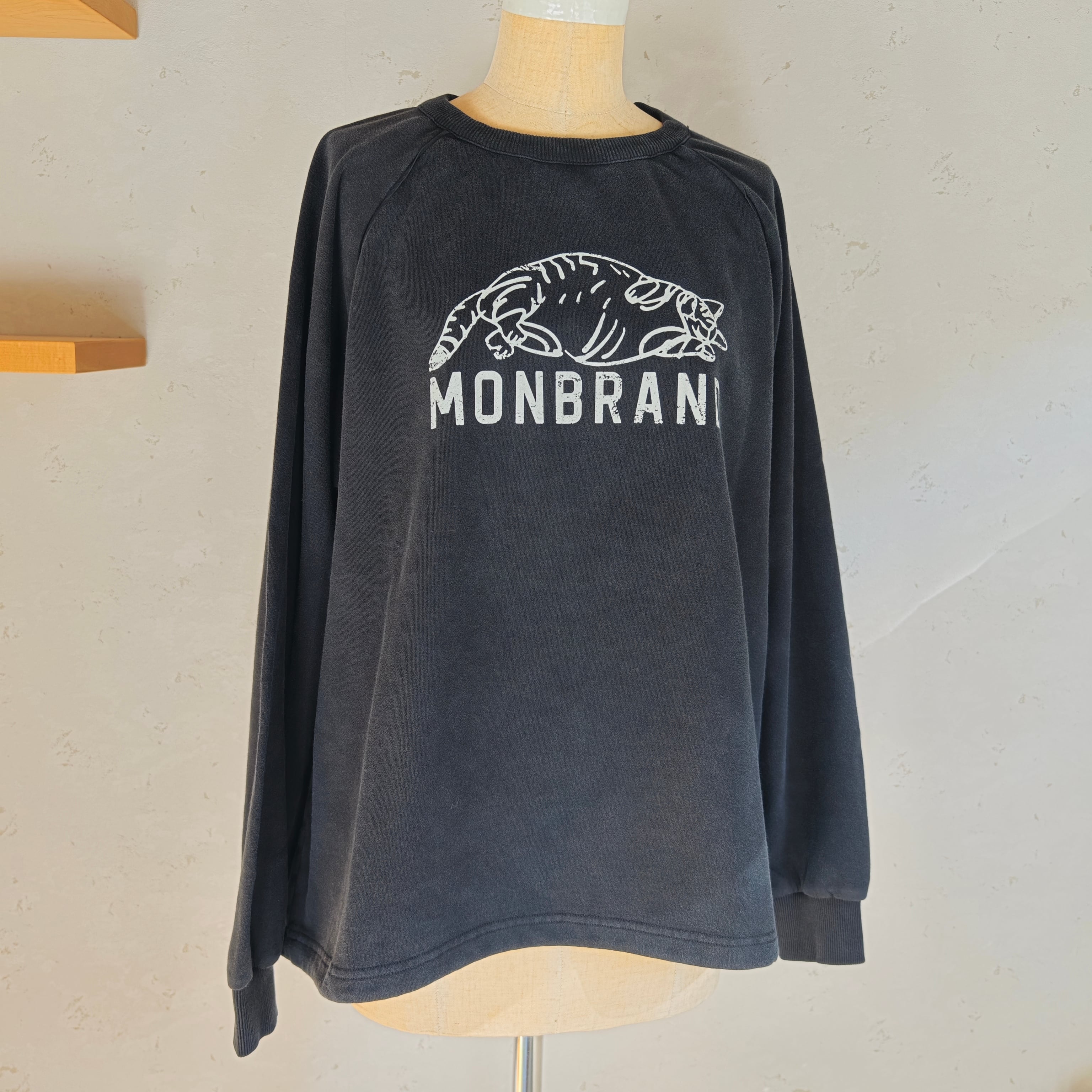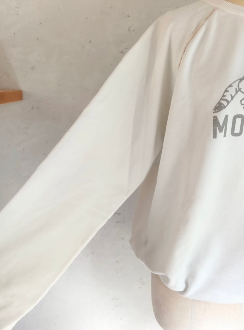 製品縫製後にワンウォッシュを施してビンテージ風の風合いを出したスウェット。