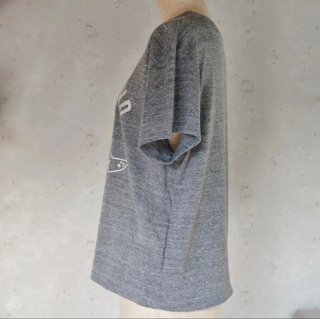 このTシャツはコットンとレーヨンとポリエステルの3種を混紡し着心地を追求したもので、肌の弱いお客様からも根強い人気がありました。デコルテが綺麗に見えるネックラインや微妙にショートの丈感が、綺麗めスタイルをお好みのお客様にも気に入っていただけた経緯も。杢調のネップが入ったミックスカラーは猫の毛が目立たないので重宝するかもしれません。